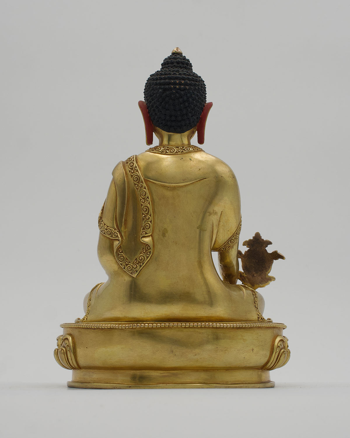 This 24K gold plated Medicine Buddha statue embodies the spiritual essence of Buddhism, offering healing and protection to those who seek it. Crafted with intricate details, this buddhist statue is a powerful symbol of inner peace and well-being. Invite the blessings of the Medicine Buddha into your home with this exquisite piece.